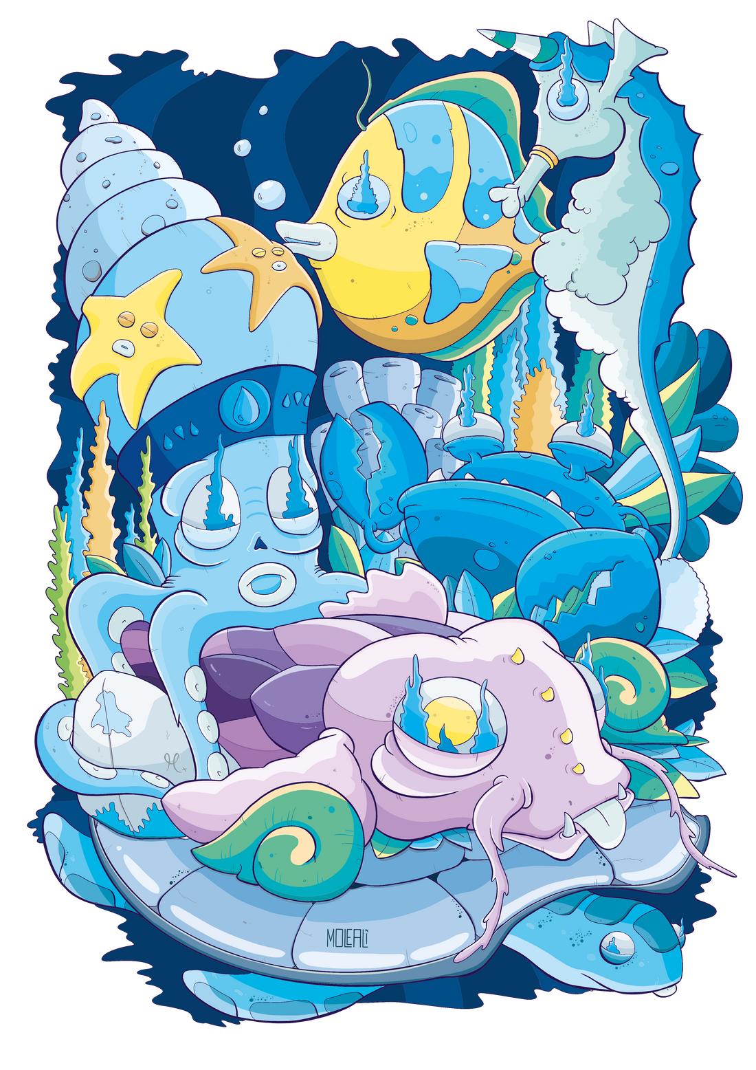 Ogni creazione di Moleali è un ponte tra le origini di ciascuno di noi e il volo di scoperta, un connubio di radici profonde e aspirazioni avventurose: le grafiche, disegnate a mano, diventano il mezzo attraverso cui narrare storie uniche e portare il pubblico in un viaggio visivo senza eguali.
